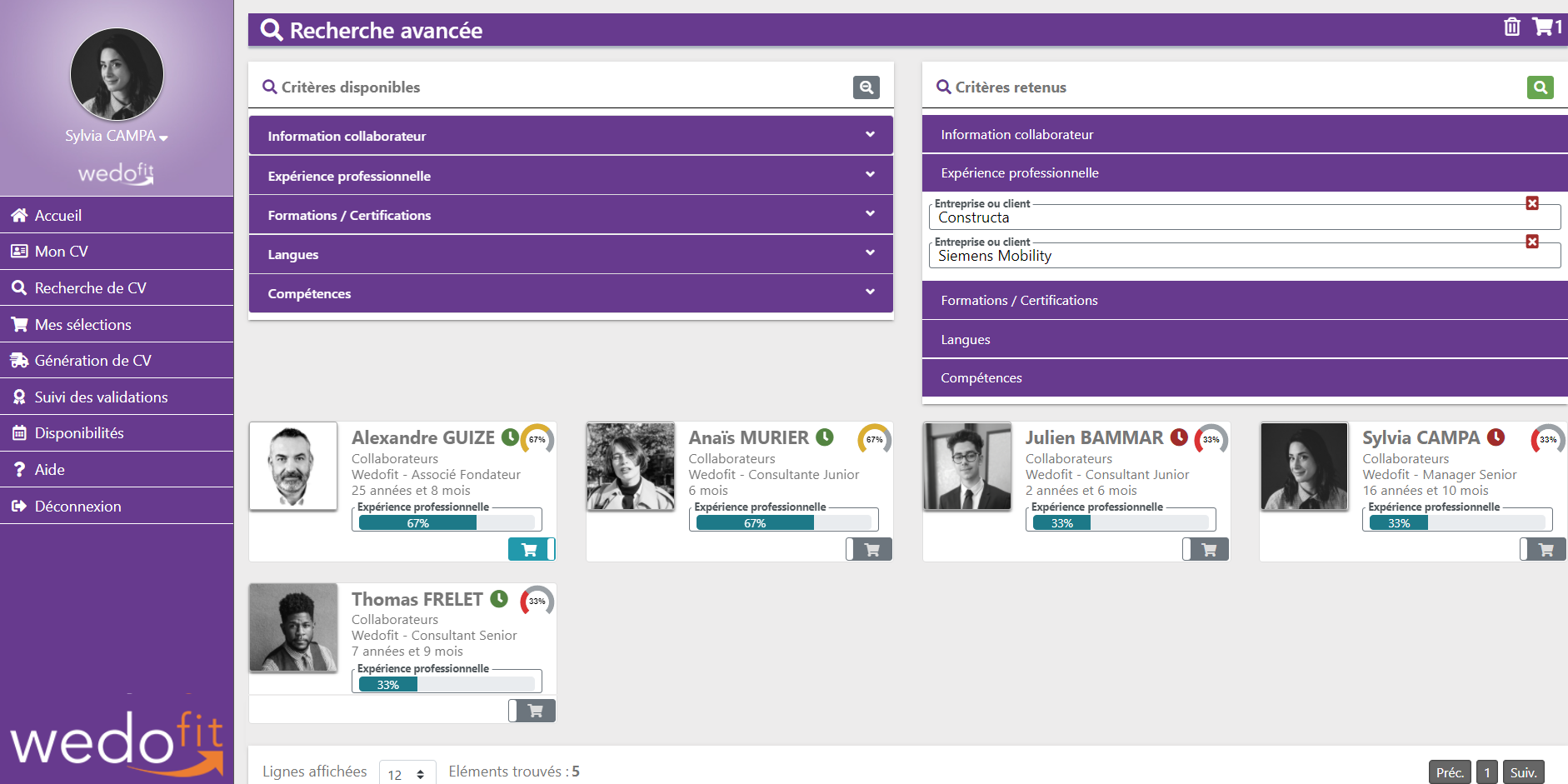 Avec wedofit, les dernières versions de CVs sont centralisés sur la plateforme